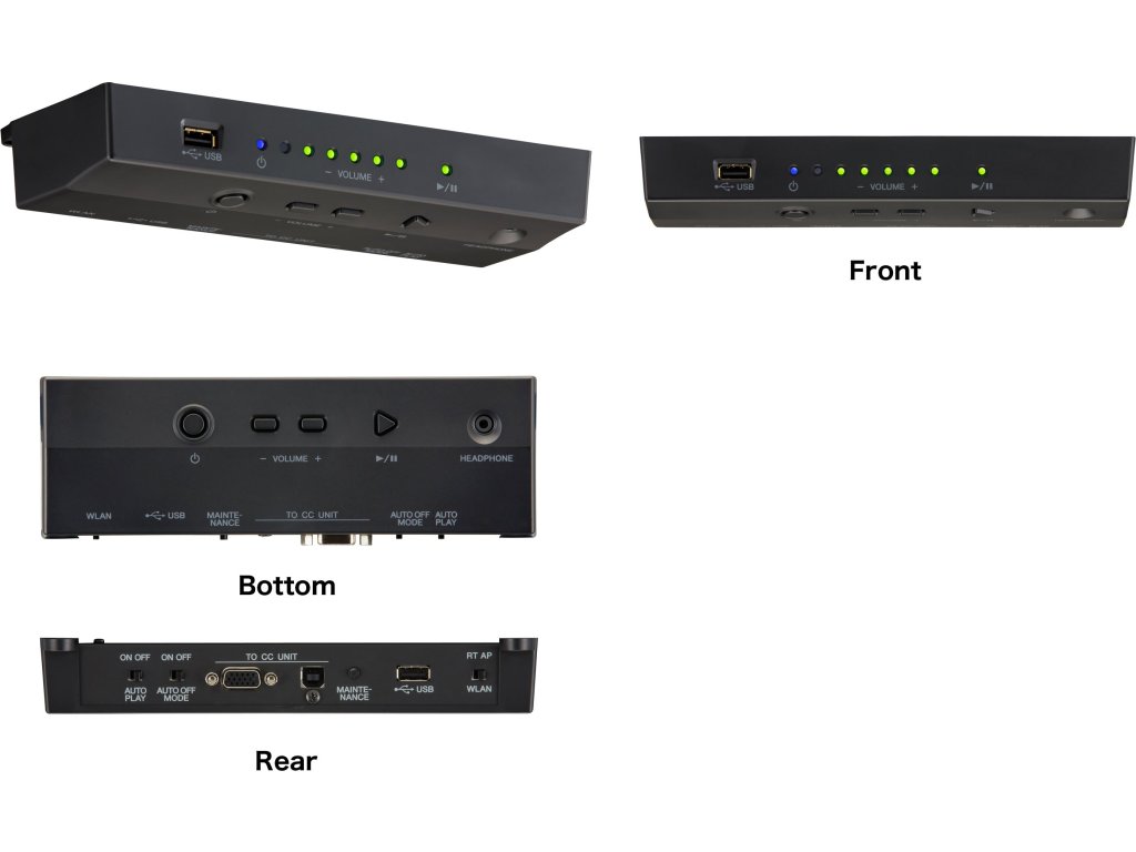 - Dodávané příslušenství: 2 x monitorový reproduktor s držákem, sluchátka, seznam zabudovaných písní, kniha (50 Classical Music Masterpieces), manuál, USB Wireless LAN Adaptér (UD-WL01)