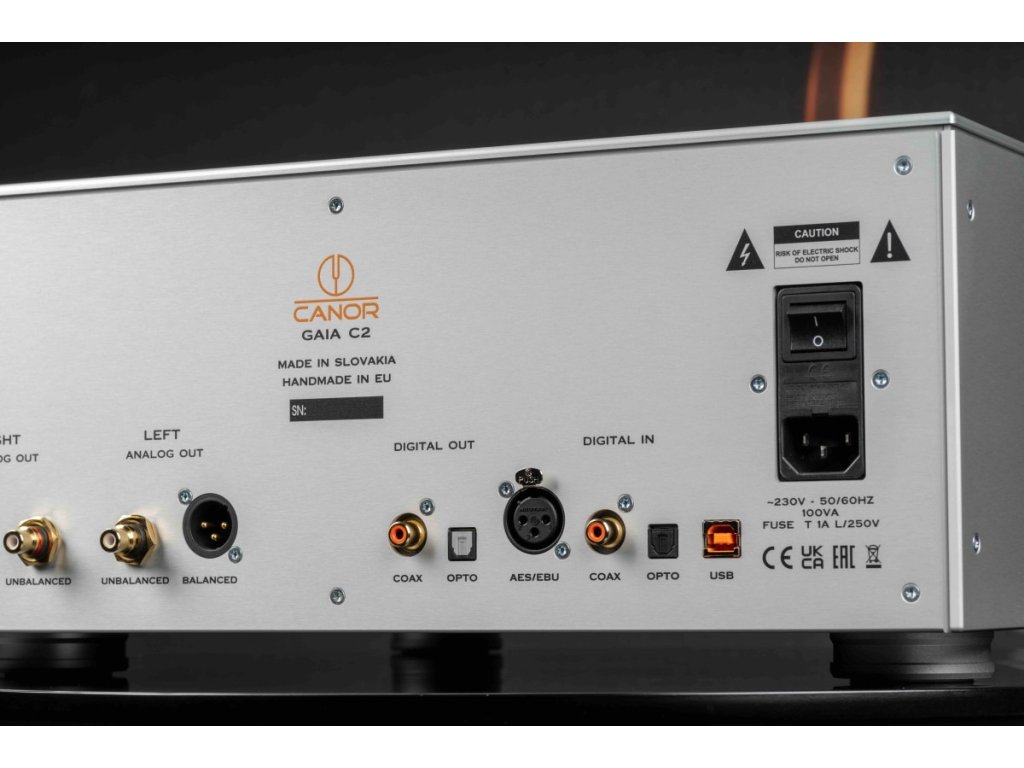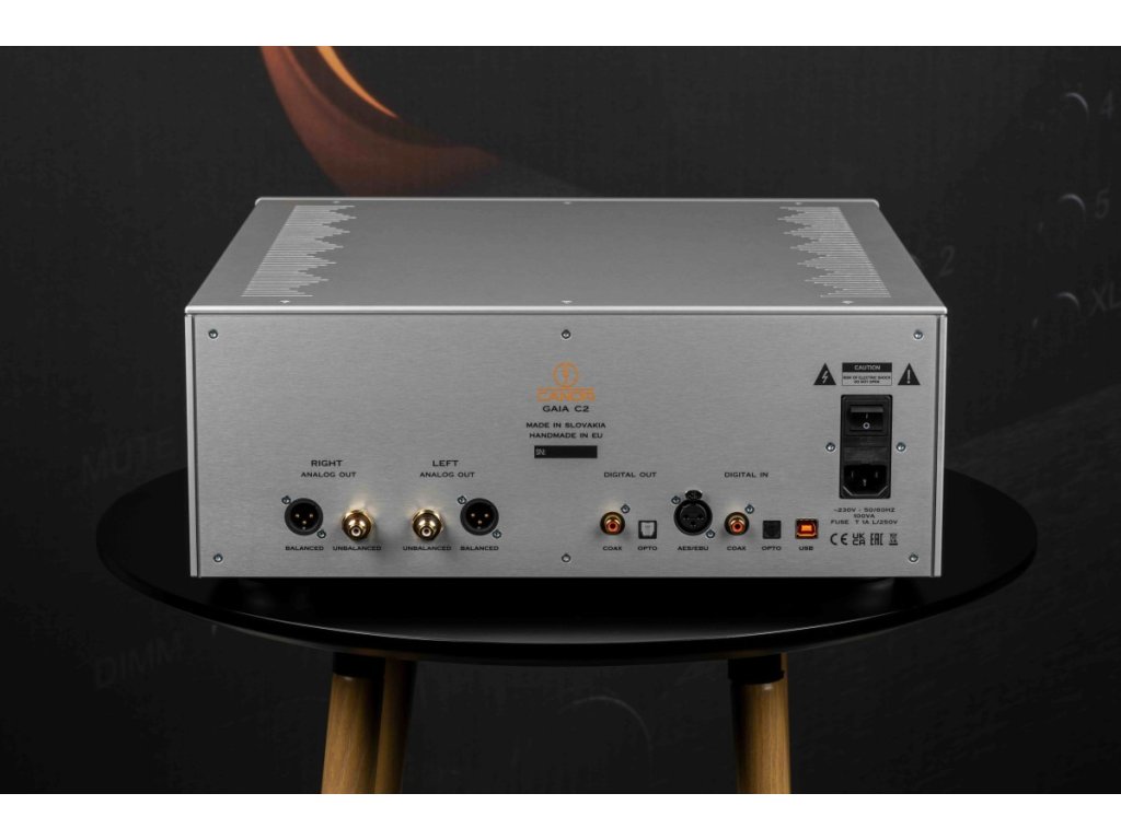 Zároveň dosahuje špičkových technických parametrů.Gaia C2 využívá D/A převodníky Texas Instruments PCM1792A, které nabízejí 24bitové rozlišení a podporu vzorkování až do 192 kHz.Díky jejich nízkému šumu, minimálnímu zkreslení a symetrické architektuře zajišťuje Gaia C2 přesné a přirozené podání zvuku.Výstupní část Gaia C2 je osazena elektronkami 2×6922/2×12AX7, které zajišťují jemné, přirozené podání zvuku s typickou muzikálností a bohatou harmonickou strukturou.
