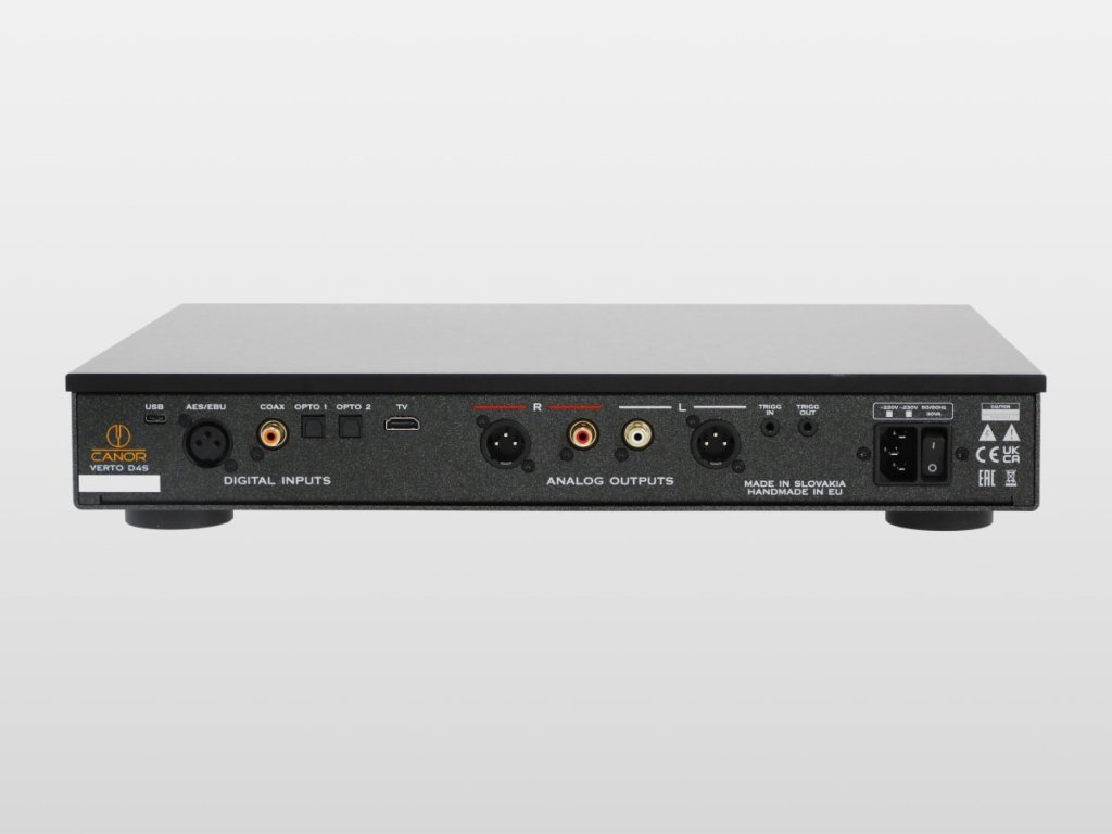 Verto D4S používá dual-mono zapojení ESS Sabre 9038, vyladěné pro vysoký dynamický rozsah a ultranízký šum. Analogový výstupní stupeň je plně diskrétní, bez operačních zesilovačů v signálové cestě.Galvanické oddělení na USB, AES/EBU, koaxiálním a optických vstupech pomáhá blokovat šum a rušení, čímž zachovává čistou a stabilní cestu digitálního signálu.