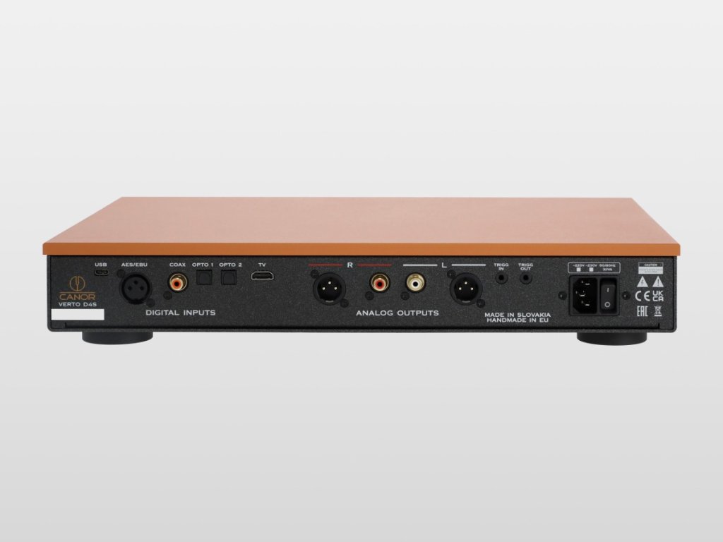 Verto D4S používá dual-mono zapojení ESS Sabre 9038, vyladěné pro vysoký dynamický rozsah a ultranízký šum. Analogový výstupní stupeň je plně diskrétní, bez operačních zesilovačů v signálové cestě.Galvanické oddělení na USB, AES/EBU, koaxiálním a optických vstupech pomáhá blokovat šum a rušení, čímž zachovává čistou a stabilní cestu digitálního signálu.