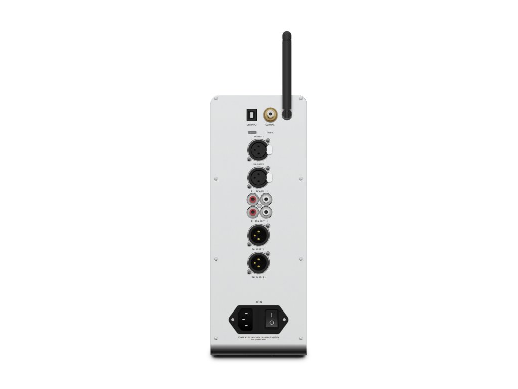 - Vstupy: 1 x stereo RCA, 1 x stereo 3pin symetrický XLR, 1 x USB-C, 1 x USB-B, 1 x digitální koaxiální, 1 x vstup pro Bluetooth anténu