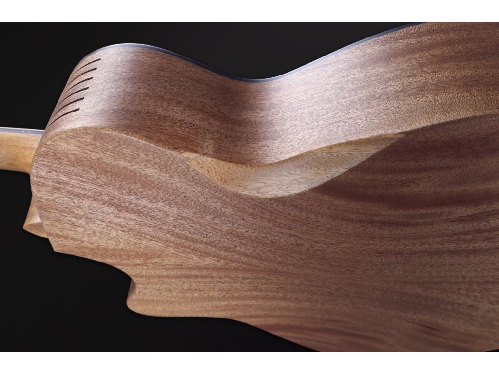 Individuální ozvučná deska z Engelmannova smrku je spárována se zadní deskou a boky z afrického mahagonu, což poskytuje čistý a vyvážený tón s teplými středy, artikulovanými výškami a okamžitým, responzivním pocitem. Tato dobře sladěná kombinace dřeva vyniká při hře prsty i brnkaním a nabízí vynikající dynamickou kontrolu a hudební čistotu v celém zvukovém rozsahu.