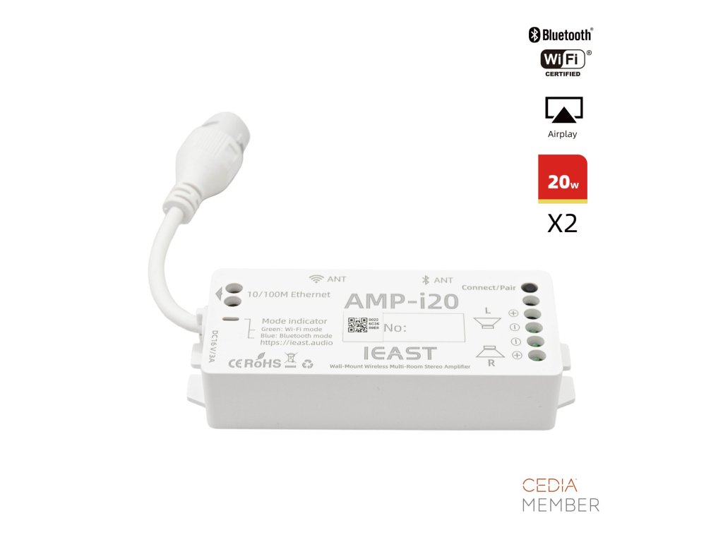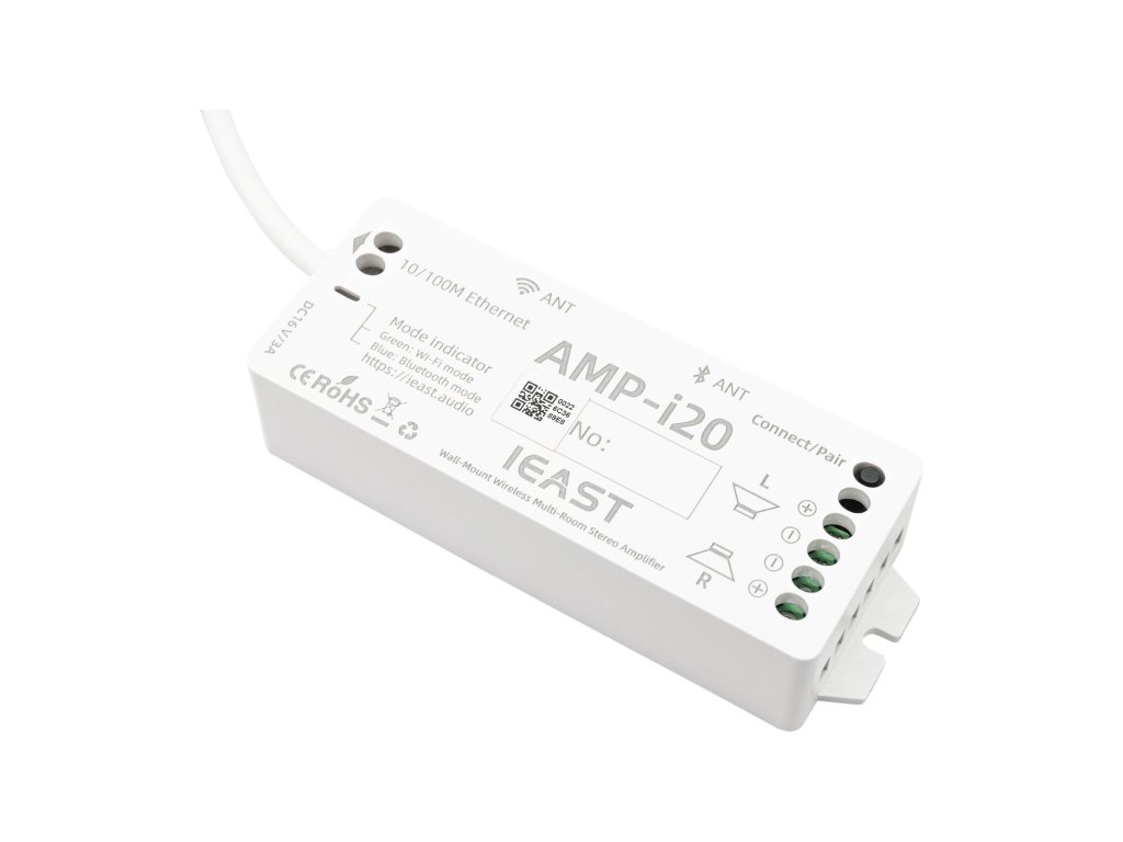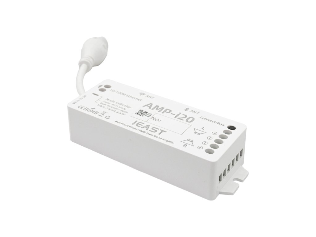 iEast AMP-i20 je nástěnný bezdrátový multiroom stereo zesilovač, který z vaší domácnosti dokáže udělat vícepokojový hudební systém. AMP-i20 má výkon 20W x 2. Je to streamovací a Bluetooth zesilovač hudby na pozadí, který dokáže přímo napájet 4Ω/8Ω reproduktory a streamovat hudbu přes WiFi a Bluetooth.Po nastavení stačí použít váš iPhone®, iPad®, Android, Mac® a notebook se systémem Windows® pro streamování vaší oblíbené hudby do každé místnosti ve vaší domácnosti.