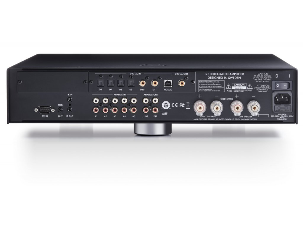 Kromě pěti analogových vstupů obsahuje zesilovač I25 DAC i plnohodnotný digitálně-analogový převodník DM36, který umožňuje převod hudby až do PCM 768kHz / 32bit a DSD 256.