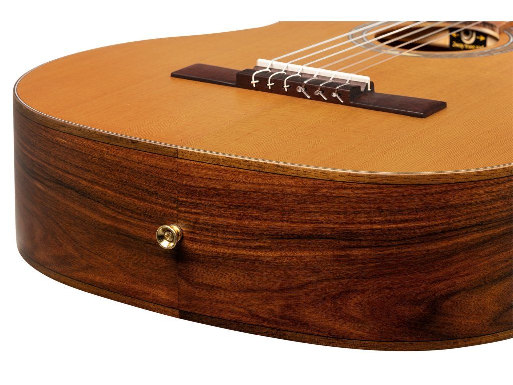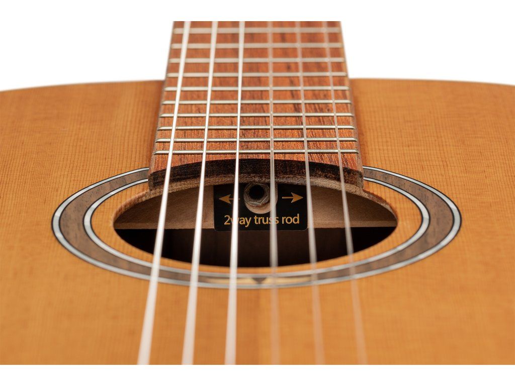 Naše modely s tepelně upravenými nylonovými strunami využívají proces, který přeměňuje urychluje stárnutí dřeviny. Zahříváním ve vakuové komoře se odstraňuje vlhkost a pryskyřice v procesu, který by jinak trval desetiletí. Výsledkem je dřevo, které je lehčí, tvrdší a pevnější, přičemž si zachovává výjimečnou tónovou odezvu a rezonanci. Tento proces také dodává bohatý jantarový lesk a vintage estetiku.