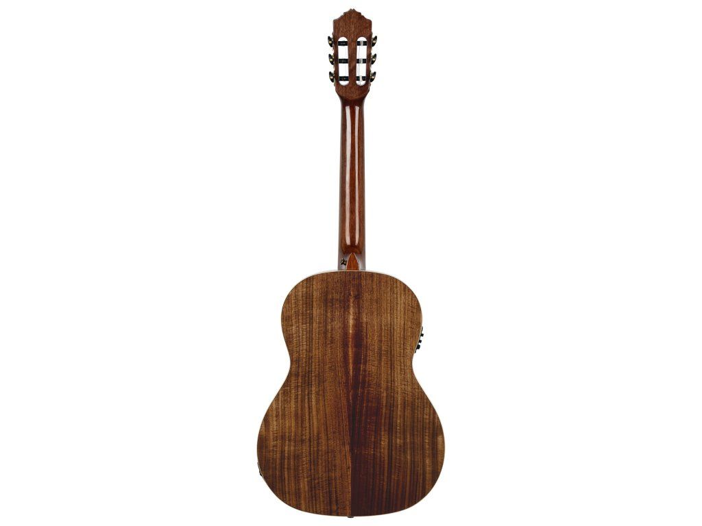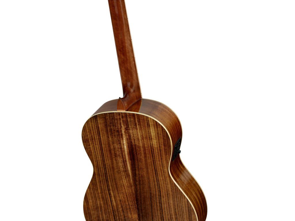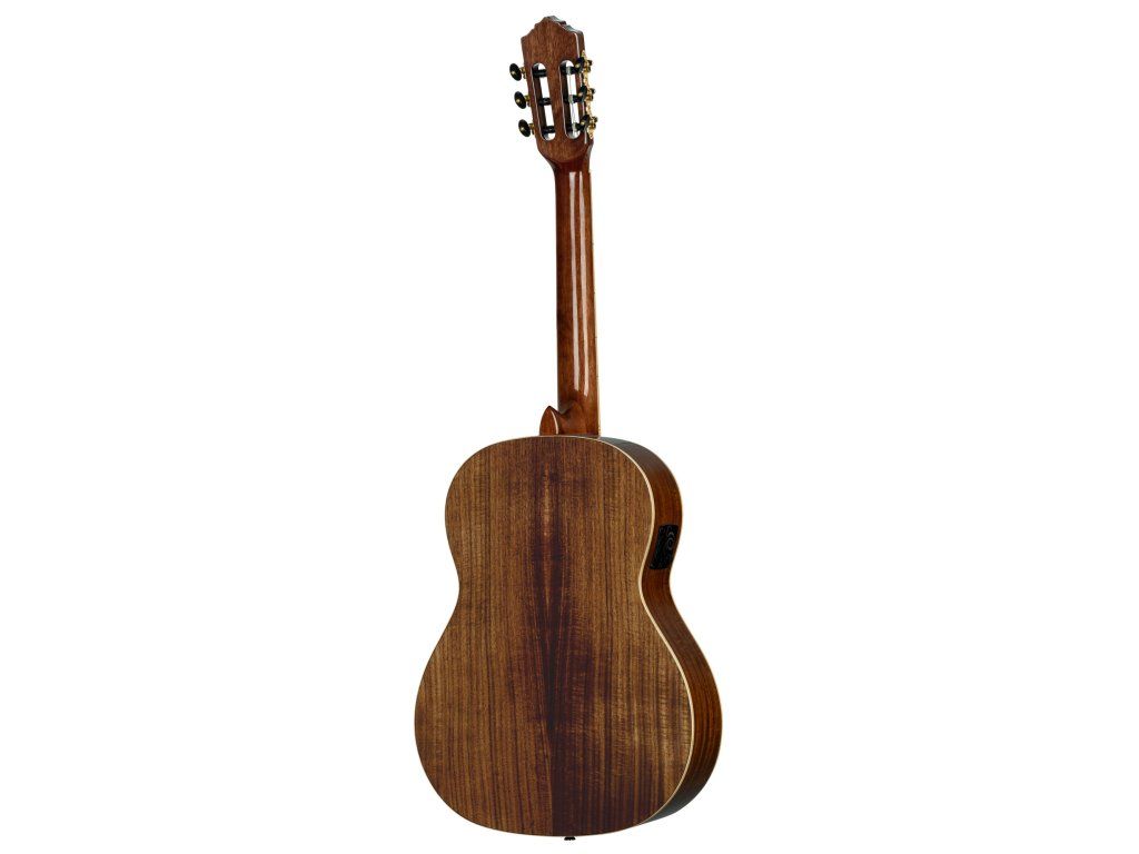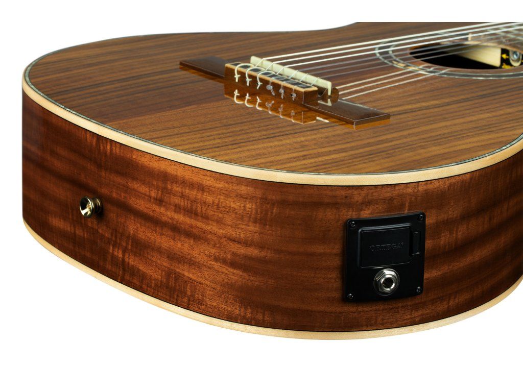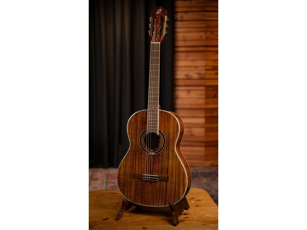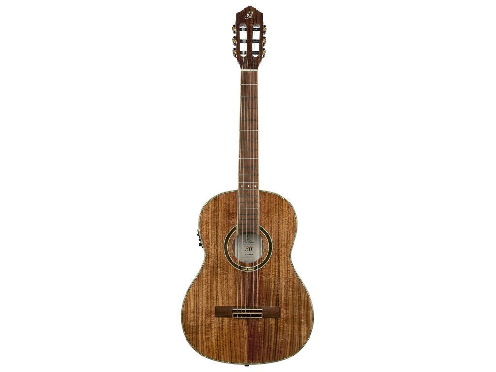 Klasická kytara s piezo-snímačem a elektronikou vyrobená ke třicátinám značky Ortega Guitars. Tělo nástroje je zhotoveno z atraktivní vrstvené fládrované akácie kvality AAA, která poskytuje kytaře vřelý zvuk s pevnými středy. K úzkému krku (profil Extra Slim) ze dřeva nato je přilepen ořechový hmatník osazený devatenácti pražci. Struny jsou uchyceny v klasických ladících mechanikách ve zlatém provedení.