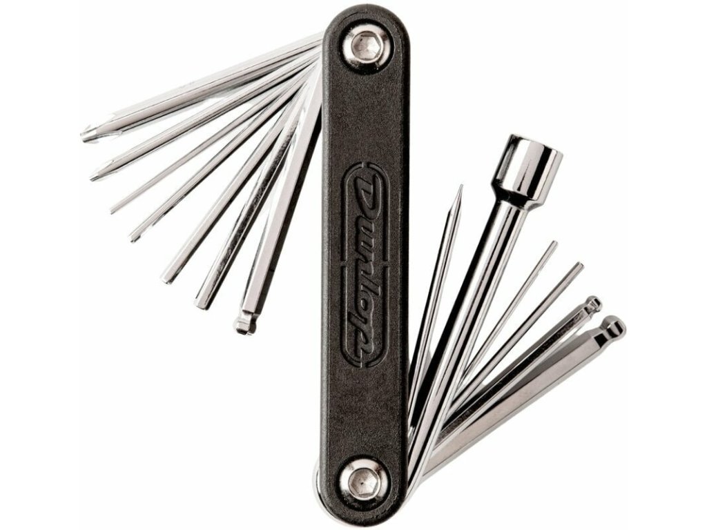 Připravte svou kytaru nebo baskytaru na vystoupení pomocí multifunkčního nástroje, který obsahuje všechny potřebné klíče pro rychlé úpravy a dokonce i pro kompletní nastavení. V jeho těle se nachází devět šestihranných klíčů, dva křížové šroubováky, jeden plochý šroubovák a klíč na výztuhu krku. Celé balení je precizně vyrobeno z vysoce kvalitních materiálů a vejde se přímo do sáčku.