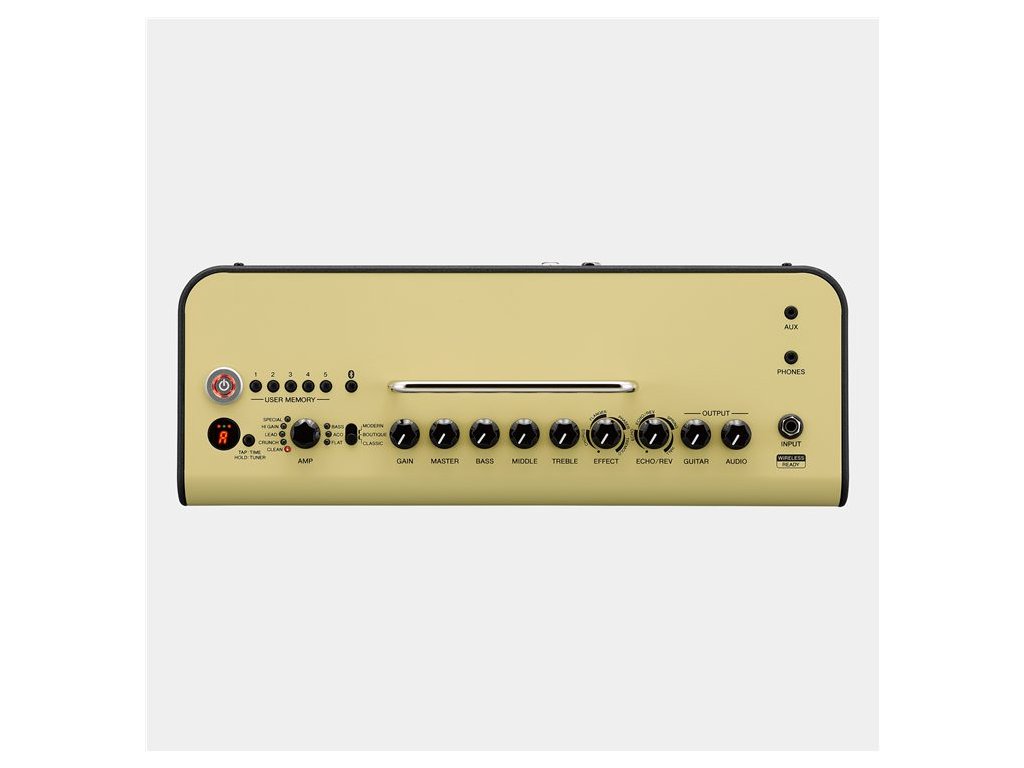 - Ovládání: Amp Selector, Gain, Master, Bass, Middle, Treble, Effect, Echo / Rev, Guitar Output, Audio Output, 5x User Memory, Bluetooth, Tap / Tuner